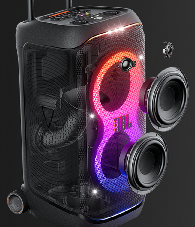 Sorpréndete con el potente sonido JBL Pro de dos altavoces de graves de 6,5″ que ofrecen unos graves profundos, nítidos y precisos, incluso a un volumen máximo, y un par de altavoces de agudos con cúpula de 25 mm que producen agudos nítidos. En el interior o al aire libre, puedes llenar un espacio del tamaño de una cancha de tenis con música.